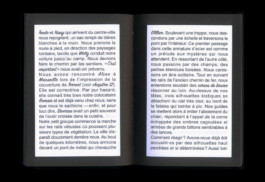 Le lecteur avance à l'intérieur de l'instrument optique présenté en couverture. Tel un photon, il passe à travers différents types de filtres et de prismes. Arrivé à la fin, on peut retourner le livret et le lire dans l'autre sens, ainsi on remonte le temps.