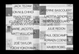 Acacio Ortas, Adriaen Coenen, Anna Haifisch, Bettina Henni, Chris Harnan & Julien Gobled, Daria Chernyshova, Denis Boudouard, Élie Partouche, Félicité Landrivon (Brigade Cynophile), Flore Chemin, François de Jonge, Jack Tezam, Jean-Philippe Bretin, Jin Angdoo, Julie Redon, Louka Butzbach, Marie Jacotey, Matt Mullican, Melek Zertal, Paul Descamps, Paul Lemaitre, Rozenn Voyer & Clément Faydit, Sébastien Sans-Arcidet, Séverine Bascouert, Son Ni & Chihoi, Yûichi Yokoyama, Laetitia Gendre, Sammy Stein, Xavier Robel, Zoë Taylor